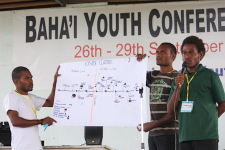 “How is it that you can arrive 15 minutes early to a session and still feel like you are running late?” asked one of the three Continental Counsellors representing the Universal House of Justice at the youth conference in Lae, Papua New Guinea. He then explained how at 8:15 a.m. every morning of the three-day youth conference, the representatives of the Universal House of Justice and the National Spiritual Assembly would enter the hall to find 620 youth already seated, singing songs, eager for the start of a new day of exploration of their role in contributing to the building of a new world. As one body they would respectfully stand while these guests found their seats. A glance up would reveal a panorama of beaming and expectant faces. He felt that “It was an imperishable bounty to witness that moment.” His impressions provide an insight into the spirit of the group of young people who gathered from 26 to 29 September to engage in conversations about the opportunities available to them as they strive to make their contribution to the betterment of their communities.