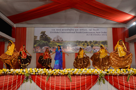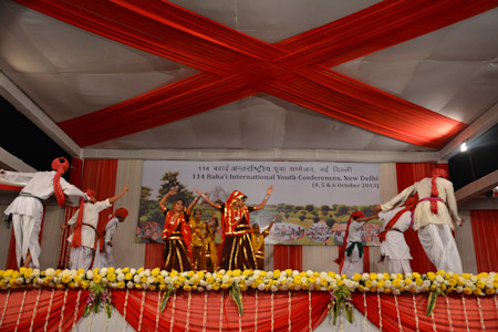 The joy and enthusiasm generated from earnest study and consultation on the materials inspired many thoughtful artistic expressions. Participants were moved to join their voices with a large group of youth on stage in stirring songs. Traditional dances beautifully illustrated the cultural richness of India, such as the pirouetting movements and colourful attire of the ghoomar from the desert region of Rajasthan. Other groups presented skits articulating themes including the importance of friends supporting one another in their path of service.